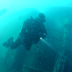 An diesem Tag musste das Boot früher ablegen, damit wir uns auf den langen Weg in den Hafen von Rijeka machen konnten. Hier stand auf den Plan ein Wrack zu betauchen. So legten wir in der Nähe des Hafenbeckens an und wir konnten uns die abendliche Skyline von Rijeka vom Wasser aus anschauen. Da wir schon viele Tauchgänge gemacht hatten, machte sich nur eine Handvoll Taucher am frühen Morgen auf dem Weg zum Wrack. Ein schönes gut erhaltenes Wrack war zu bewundern. Nach dem Tauchgang machte sich das Boot gleich auf den Weg zum Hausriff der Tauchbasis. Auch diese wurde dann noch erkundet.