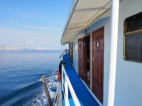 Der erste Tauchplatz wurde nach 2 Stunden Fahrt, an der wunderschönen Küste von Krk entlang, erreicht und das Boot ankerte das erste Mal in einer traumhaften Bucht. Wir entschieden uns erst am nächsten Morgen ins Wasser zu springen und genossen stattdessen einen wunderschönen Abend in der einsamen Bucht. Es sollten noch viele folgen.