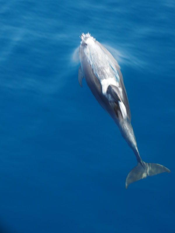 Wie vom Koch versprochen besuchten uns auch in dieser Bucht wieder die Delfine. Einige Meter vom Boot entfernt schwammen sie an uns vorbei.