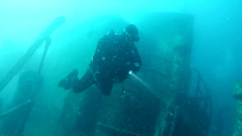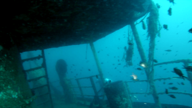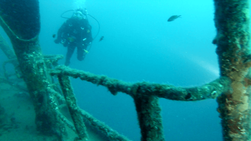 An diesem Tag musste das Boot früher ablegen, damit wir uns auf den langen Weg in den Hafen von Rijeka machen konnten. Hier stand auf den Plan ein Wrack zu betauchen. So legten wir in der Nähe des Hafenbeckens an und wir konnten uns die abendliche Skyline von Rijeka vom Wasser aus anschauen. Da wir schon viele Tauchgänge gemacht hatten, machte sich nur eine Handvoll Taucher am frühen Morgen auf dem Weg zum Wrack. Ein schönes gut erhaltenes Wrack war zu bewundern. Nach dem Tauchgang machte sich das Boot gleich auf den Weg zum Hausriff der Tauchbasis. Auch diese wurde dann noch erkundet.