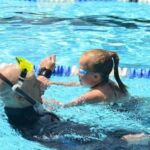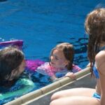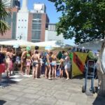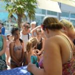 Mit Hilfe der Kostüme und passender Schminke verwandelten sich die wartenden Kinder und auch nicht wenige Eltern  schnell in waschechte Meerjungfrauen und Meermänner. Obwohl Wartezeiten durch den riesigen Ansturm entstanden war die Stimmung super! Im Wasser warteten unsere Helfer, um mit den frischgebackenen Meereswesen in einer 1 zu 1 Situation den richtigen Beinschlag und die Körperhaltung beim Gleiten durchs  Wasser zu üben.