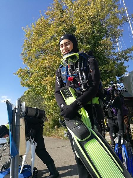 Viel Zeit das Panorama zu genießen blieb aber unseren 7 Tauchschülern nicht. Sie nutzten die Chance am Bodensee ihren CMAS * Tauschein zu beenden. Bei traumhaftem Wetter absolvierten sie ihre Prüfungstauchgänge vor der wunderschönen Kulisse von Meersburg.